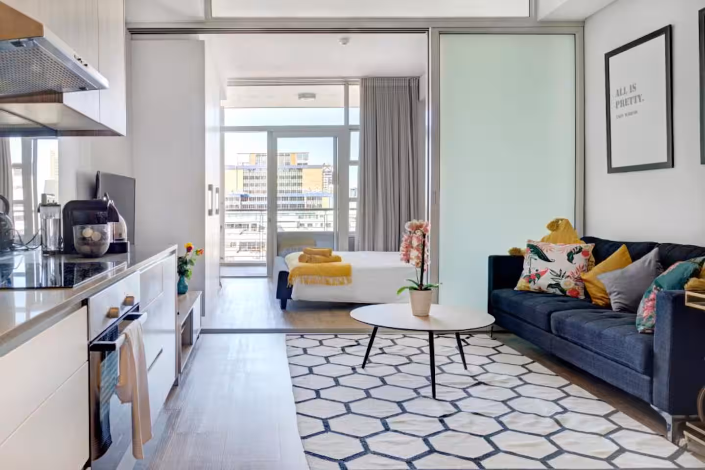 This one bedroom apartment is designed to make your stay in Cape Town an enjoyable one. It is thoughtfully furnished and comes with all the amenities and modern appliances including a washer dryer for your convenience.This is a smoke-free building: smoking is strictly prohibited in all areas