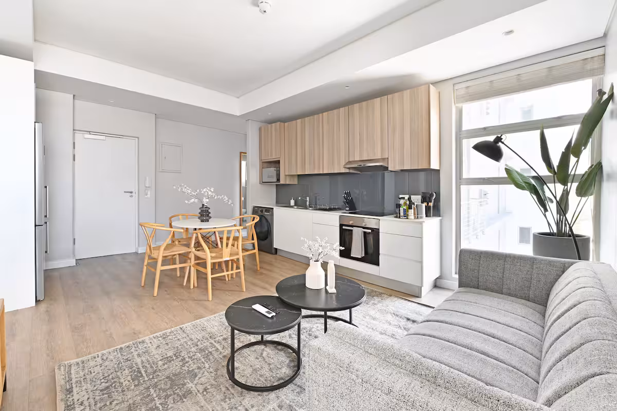 The apartment is centrally situated right in the heart of Cape Town. It’s an easy walk to coffee shops, restaurants, museums, and the city’s many great attractions. V&A Waterfront is just three minutes drive away, making shopping a breeze.